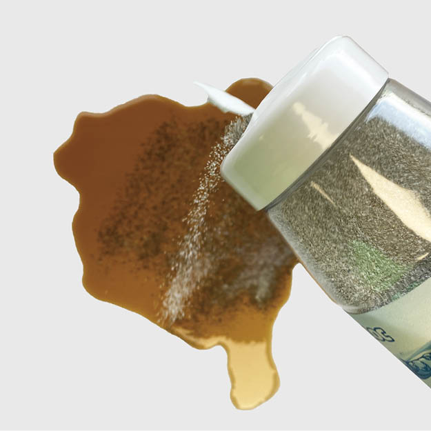 Discover in pictures how OBLOC® all-liquid absorbent powder instantly absorbs spills and protects your surfaces in the blink of an eye.